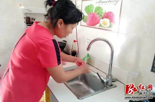 大坡村7组村民张立华在危房改造后的新家里用上了自来水