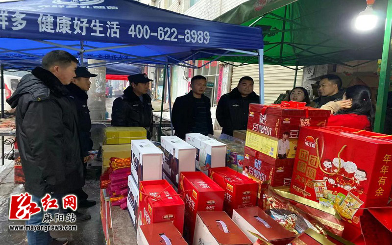 在确保主街道车辆停放有序,摊位按规摆放、不以路为市的同时,对沿街商家开展了安全生产等方面的宣传。其中,重点对销售烟花爆竹的摊位进行了安全检查,对违法销售烟花爆竹、超标存放烟花爆竹、销售三无产品的商家进行了整治。